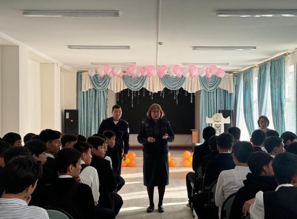 10.10.2025 ж. куні » Адал азамат» біртутас тербие багдарламасы аясында 9-10 сыныпер балаларына мектеп инспекторынын катысуыменкукыкбузушылыктын алдын алу, кешкі мезгілде топтасып кешеде журмеу туралы тусінікжумыстары жургізілді.Катыскан окушы: 110